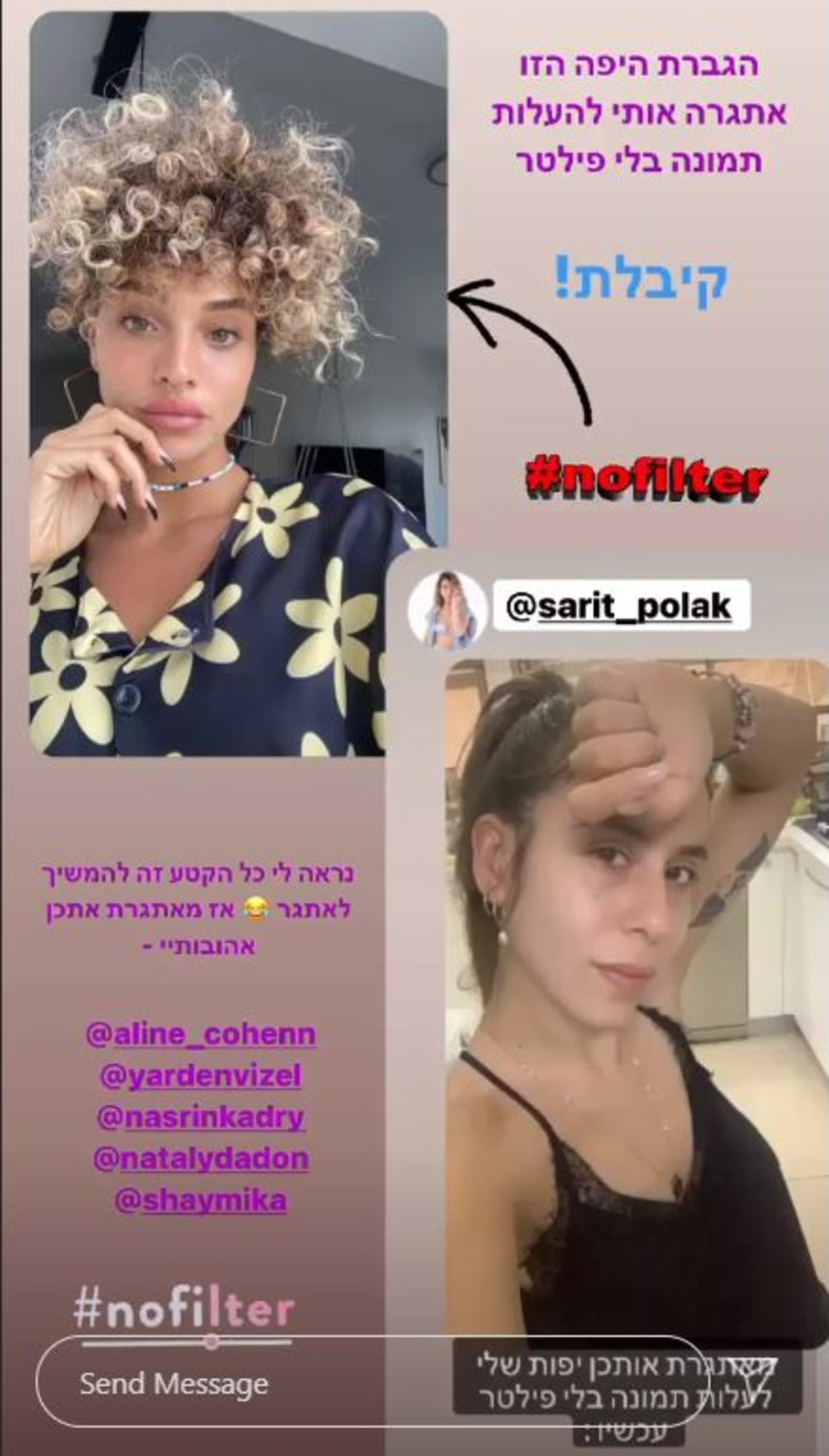 הזמרת הצעירה והמצליחה, אלה לי להב , ככל הנראה לא ממש אוהבת את ההתנהלות של מור לרמן בבית האח הגדול והחליטה שהיא לא תשמור את דעותיה הקשות עליה לעצמה. בפוסט שעלה לעמוד האינסטגרם הפשוטע ובו בדיחה על המתיחות בין לרמן לגל גברעם, הגיבה להב וכתבה: אל תצביעו לי, תצביעו לעדן פליז. נגישות איזורים אלה תלויה באתר המתארח ואין לנו אפשרות להבטיח את נגישותם. סלבס אוספת עבורכם מקבץ שבועי של תמונות אינסטגרם עדכניות, ערוכות וחתוכות על ידי הכוכבים הישראלים, שמוכיחות אחת ולתמיד שגם אדם מפורסם הוא הכי אחי(כם).